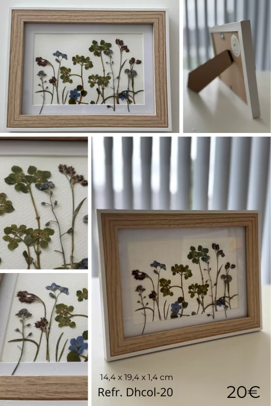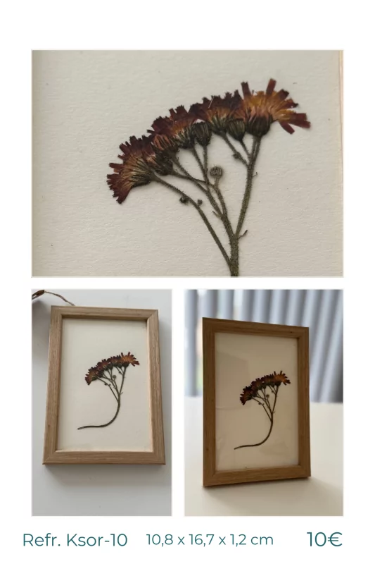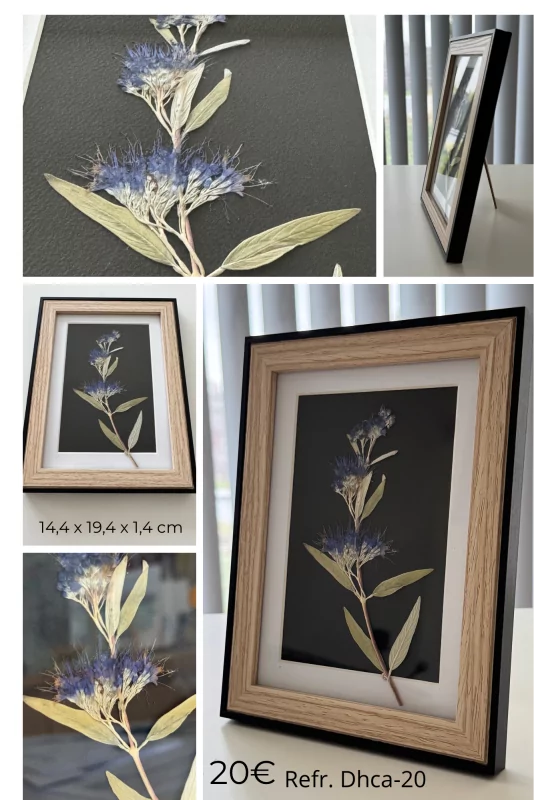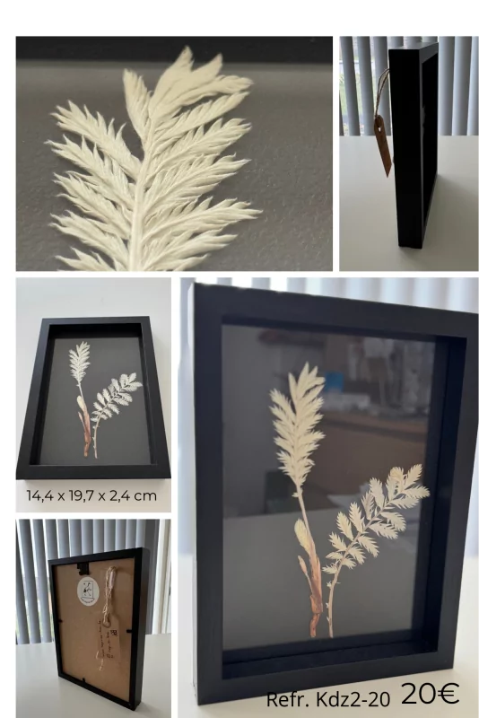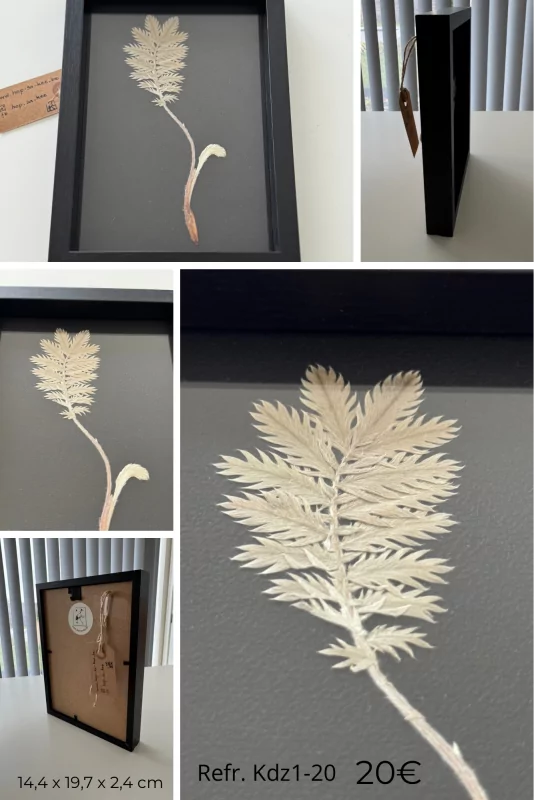 La majorité des fleurs et plantes sechées proviennent directement de mon jardin. Je les cueille moi-même, mais seulement si les plantes et les fleurs des espèces en question sont suffisamment nombreuses (c'est particulièrement important au printemps et à l'automne, lorsque les pollinisateurs éprouvent des difficultés à trouver de la nourriture). Après la cueillette, les plantes sont mises à sécher avec soin. Le processus demande alors beaucoup de patience. Une fois séchées, j'accorde une grande attention à la disposition des plantes ou des fleurs afin d'obtenir une composition attrayante. C'est donc avec beaucoup de plaisir que je vous propose ces œuvres d'art uniques pour que vous puissiez profiter chaque jour de leur élégance naturelle sur votre mur ou sur votre meuble.